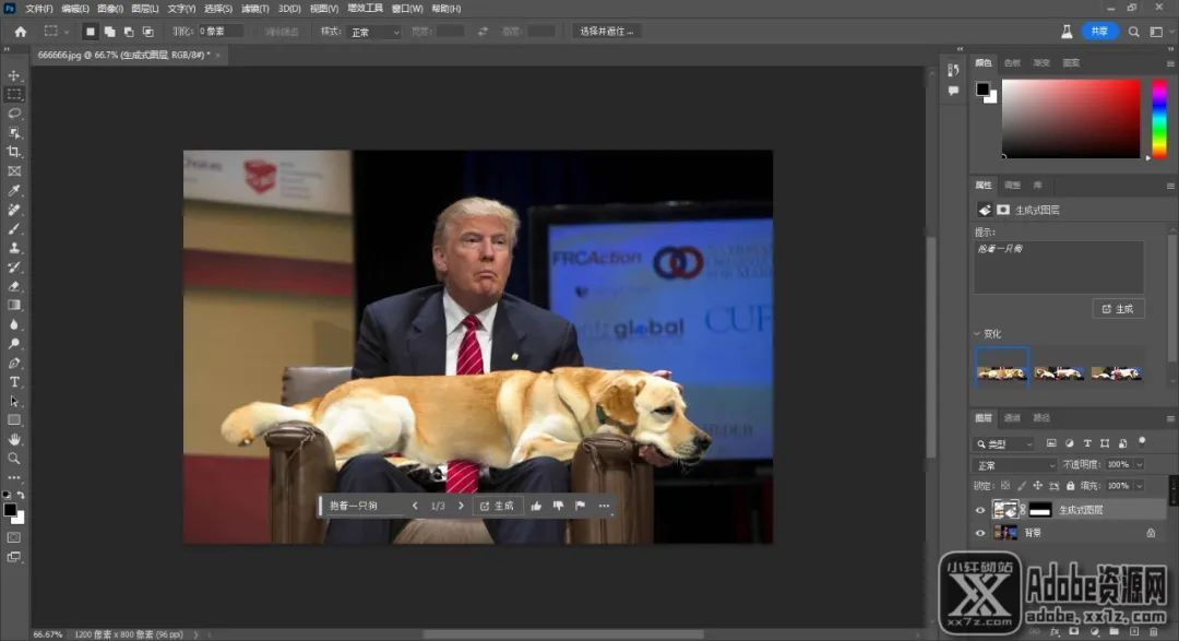怎么把竖屏变横屏,或者横屏变竖屏,很简单,扩充画布到合适的尺寸,调整图像,然后把剩下的区域选中,直接生成,AI马上就给你补全,不满意就重新生成,每次三张可供选择。